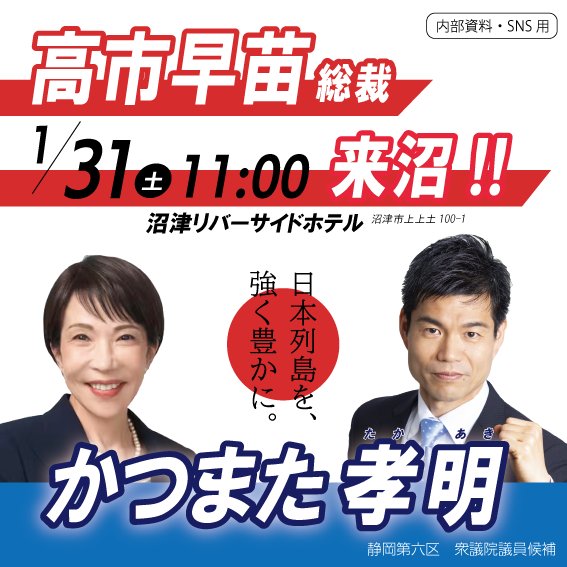 本日1月31日、総理が勝俣孝明候補の地元の地元、沼津市に!!