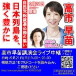 2025年9月20日 / 最終更新日 : 2025年9月22日 yohei サイト更新 日本列島を強く豊かにする高市早苗候補を応援します。 竜巻被災対応と、上川先生の公式発表を待っていた事もあり公表が遅くなりました。 全ての候補者が最高ですが、その上で、失われた保守層や若い方々を真の中道保守で取り戻し、若い議員や女性議員を育める候補者。 そして、芯ある自民党 […]